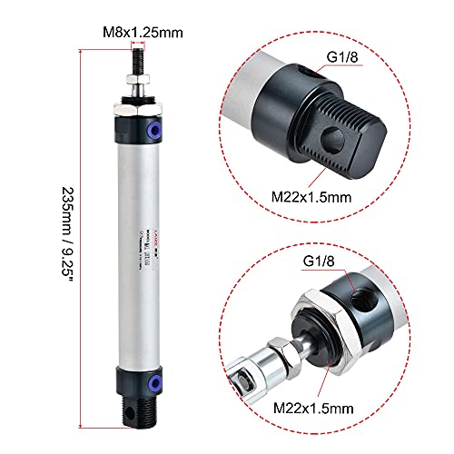 Sourcing map Pneumatico Aria Cilindro 20mm Alesaggio 100mm Corsa con Y Connettore e Raccordi Rapidi MAL 20x100 per Automatico Attrezzatura