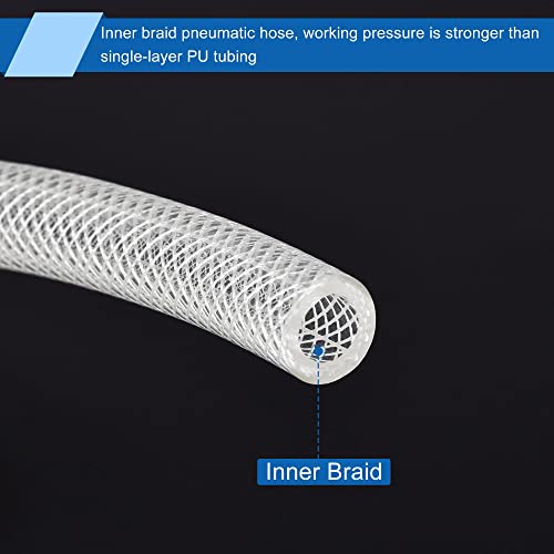 Sourcing map Tubo pneumatico aria PU treccia tubo 8mm (5/16'') IDx12mm (15/32'') ODx9.84Ft trasparente per compressore d'aria, liquido convogliare