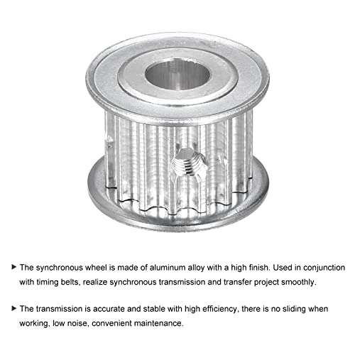 La ruota sincrona di colore argento è realizzata in lega di alluminio con una finitura elevata. Utilizzato in combinazione con le cinghie di distribuzione, realizzare la trasmissione sincrona e il progetto di trasferimento senza intoppi. Ampiamente usato nella trasmissione meccanica come stampanti 3D, perforatrici, fresatrici, ingranaggi, torni CNC, ecc.