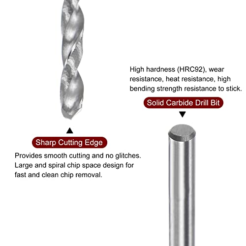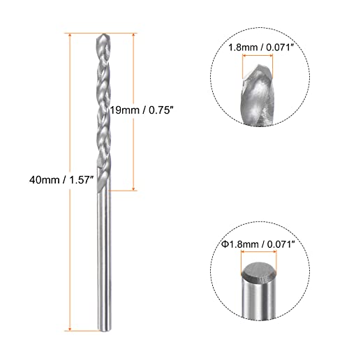 Sourcing map Punta da trapano in carburo solido 1,8 mm C3/K10 in carburo di tungsteno di precisione Mini Micro gambo dritto Twist Bit per acciaio inossidabile Metallo Plastica Legno