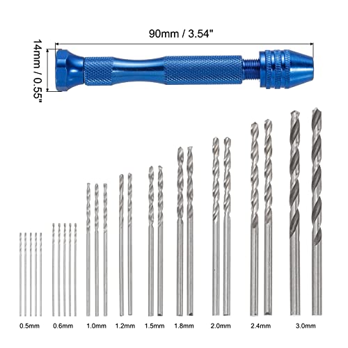 Sourcing map Set di 76 punte da trapano a mano, 10 punte da trapano da 0.3 mm a 1.2 mm, 25 punte da trapano micro da 0.5 mm a 3.0 mm, strumento a mano per morsa in legno, plastica fai da te
