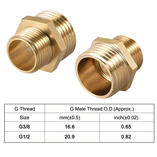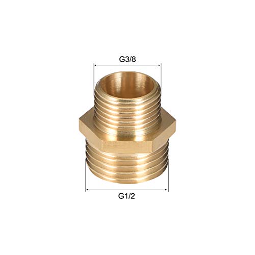 Sourcing map Raccordo in ottone riduttrice nipplo esagonale da 3/8 x 1/2" G tubo maschio