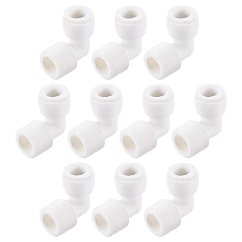 Sourcing map Rapido Connettore L Tipo G1/2 Maschio Filettatura a 3/8" Tubo, Gomito Collegamento Raccordi per Acqua Purificatore, 37x37mm Bianco 10pz
