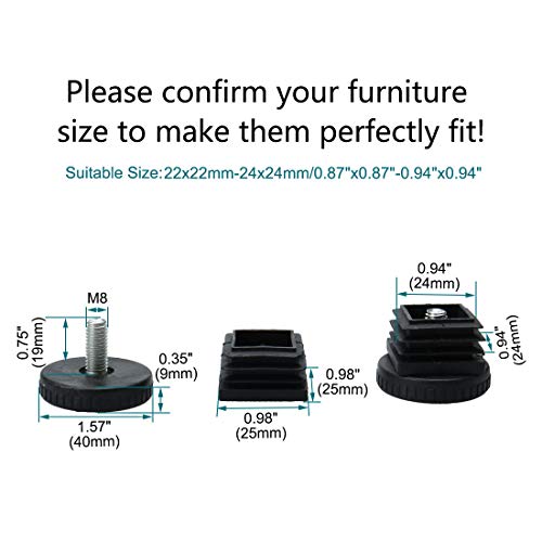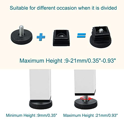 Sourcing map Regolabile Piedi livellamento 25 x 25mm tubo quadrato mobili inserti scorrevole 8 set