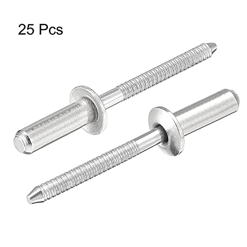 Sourcing map Rivetti ciechi in acciaio inox 304 rivetti decorativi con nucleo 4,8 mm di diametro 16 mm di lunghezza impugnatura tono argento, 25 pezzi