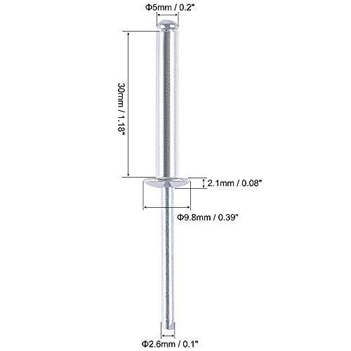 Sourcing map Rivetti Ciechi, Rivetti a Strappo Alluminio Nucleo Decorazione Rivetti 5mm Diametro 30mm Presa Lunghezza Argentato, 60pz