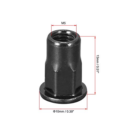 Sourcing map Dado per rivetti M5, filettatura mezza esagonale in acciaio al carbonio zincato, testa piatta, filettata, 100 pezzi