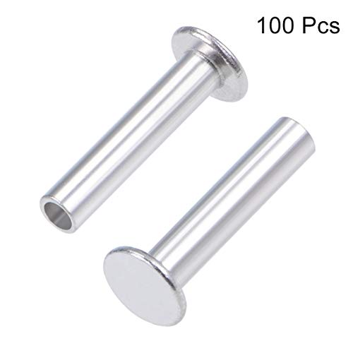 Sourcing map - Rivetti semi-tubolari a testa piatta, in alluminio, 2,5 x 12 mm, colore: Argento