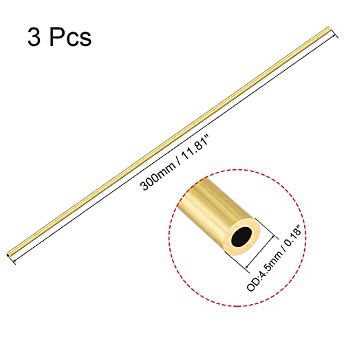 Sourcing map Tubo rotondo in ottone, lunghezza 300 mm, diametro 4,5 mm, spessore della parete, tubo dritto senza cuciture, 3 pezzi