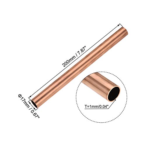 Sourcing map Rame Rotondo Tubo 17mm OD 1mm Parete Spessore 200mm Lunghezza Dritto Tubo Tubo