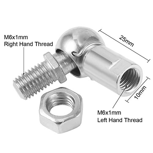 Sourcing map CS10 Asta Fine Sfera Cuscinetto con Perno Sinistro Femmina Filetto M6x1.0 Destro Filetto M6x1.0 Autolubrificante Carbone Acciaio Sfera Incastro Raccordo 2pz
