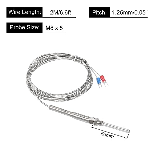 Sourcing map Sonda termocoppia tipo K impermeabile sensore regolatore di temperatura in acciaio inox 32 a 1002°F (da 0 a 600 °C) 5x50mm 7,5ft