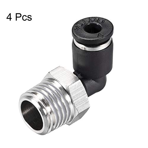 Sourcing map Spingere Collegare Tubo Raccordo Maschio Gomito 4mm Tubo OD x 1/4 NPT Filettatura Pneumatico Aria Spingere Montare Bloccare Raccordo 4 pezzi