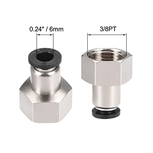 Sourcing map Spingere a Connetti Tubo Raccordo Adattatore 6mm Tubo OD x 3/8PT Femmina Dritto Pneumatico Connettore Collega Tubo Raccordo Argento Tono 2pz