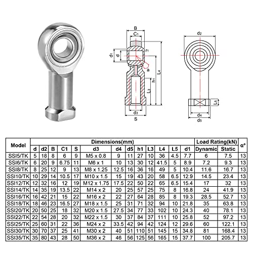 Sourcing map SSI14T/K Rod End Bearing 14mm Alesaggio in acciaio inox M14x2 filettatura femmina destra