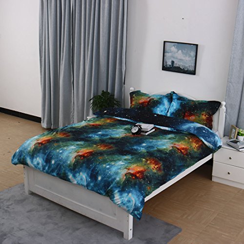 Sourcing map Stella Blu Cielo Luna Notte Copripiumino Viola Stellato Modello Singolo Size 4pcs- Include 1 Copripiumino, 1 Lenzuolo Piatto, 2 Federe per Cuscino Multicolore Singolo
