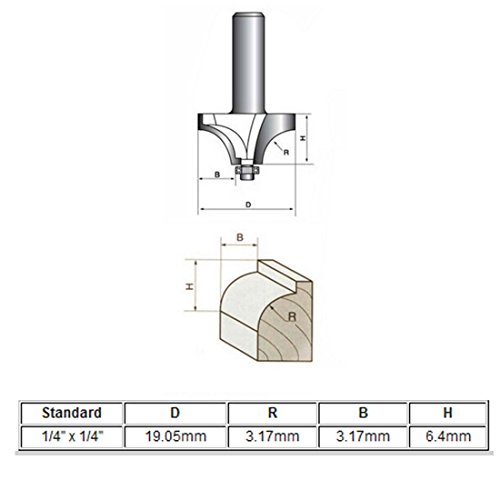Sourcing map 1/4" x 1/4" Stelo dritto cuscinetto finale arrotondamento angoli Rotondo Over Punta fresatrice