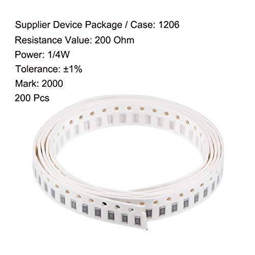Sourcing map Chip Surface Mounted Devices resistore, 200 Ohm 1/4W 1206 Resistori fissi, 1% tolleranza 200pz