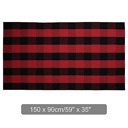 Sourcing map - Tappeto a quadretti in cotone, per interni ed esterni, tessuto lavabile, a scacchi, stile retrò, per portica/cucina/lavandina/bagno/ingresso, 45% cotone., rosso nero, 59"x35"