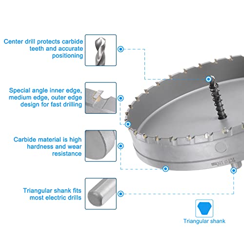 Applicazioni versatili: la sega a tazza in metallo duro può essere installata su trapani manuali, trapano a batteria, trapani a percussione, trapani da banco e trapani CNC, creando un ottimo taglio di fori per tutte le tue esigenze di perforazione.