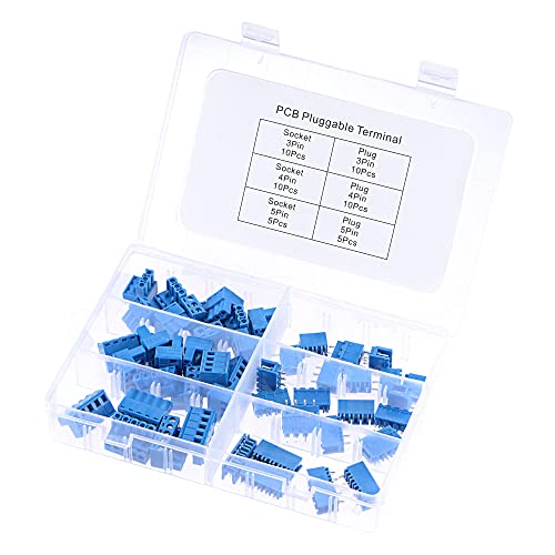 Sourcing map PCB Vite Terminale Blocchi Assortimento Kit 5,08mm Passo 3 Perno/4 Perno/5 Perno 15A Dritto Plug-in per Elettrico, Strumenti 25 Coppia