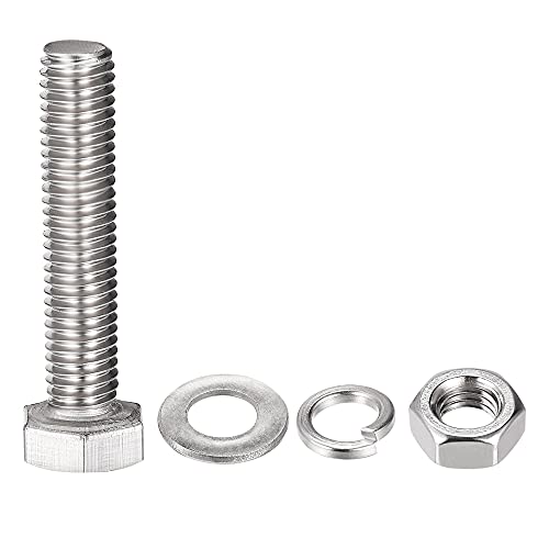 Sourcing map Viti a testa esagonale M8 x 40 mm, bulloni, dadi, kit di rondelle piatte e di blocco, bulloni esagonali a filettatura totale in acciaio inossidabile 304, 10 set