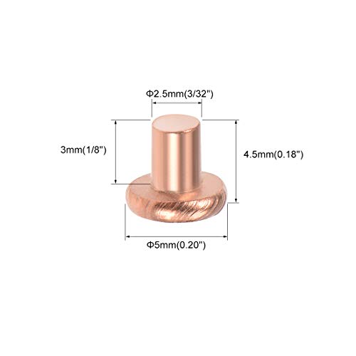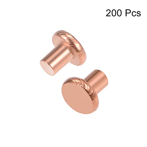 Sourcing map 200 pz 3/32" x 1/8" Testa piatta rame rivetti solidi elementi fissaggio