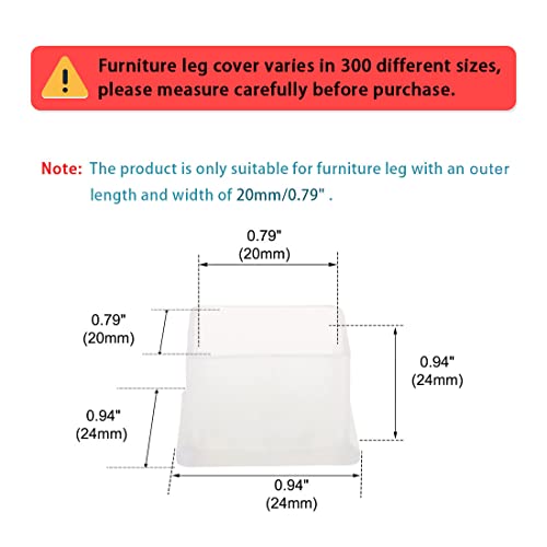 Sourcing map PVC trasparente gamba sedia cappucci piedini antiscivolo per coprire mobili pavimento scivolamento protettore 18pz 0,79" x 0,79" (20x20mm) dimensione interna ridurre rumore evitare graffi