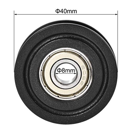 Sourcing map U608ZZ - Ruota di guida a rulli con cuscinetto a sfere in nylon, 8 x 40 x 10 mm, doppia schermatura in metallo (GCr15), 2 pezzi, colore: Nero