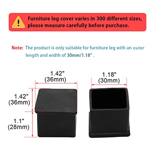 Sourcingmap 15Pcs Gomma Nera 30mmx30mm Quadrato Poltrona Piedi Copri poltrona Gamba Caps