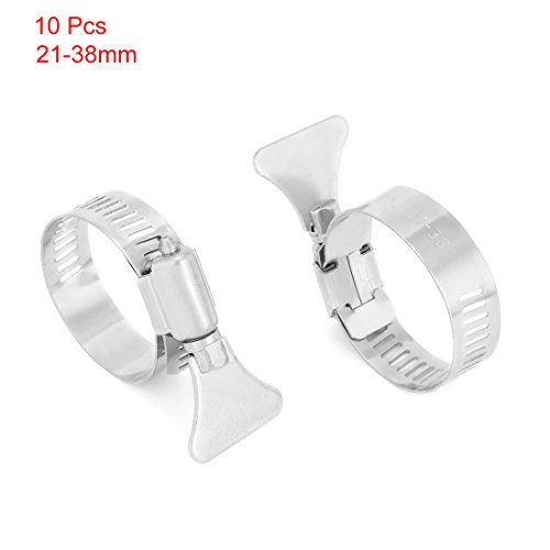 Sourcingmap 21mm-38mm Gamma di serraggio 304 in acciaio inox a farfalla per fascetta Stringitubo 10pz