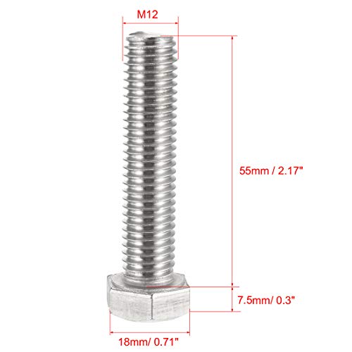 Sourcingmap, bulloni esagonali M12 M12-1,75 x 55 mm UNC, viti a testa esagonale A2-70(304), in acciaio inox, completamente filettate, 5 pezzi