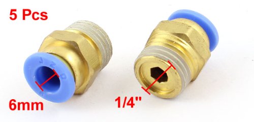 Sourcingmap - 6mm a 1/4"filetto maschio one touch spinta pt in rapida armatura di accoppiamento 5pcs