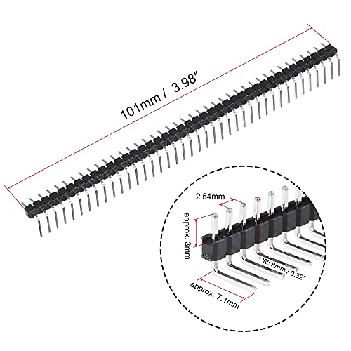Sourcingmap, Pin di intestazione ad angolo retto, 40 P, 1 fila, 2,54 mm, passo argento, pin per PCB 40 pezzi