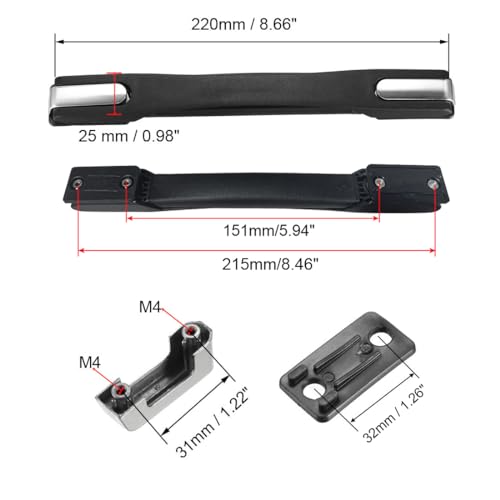 Sourcingmap, maniglia per bagagli, 220 mm, con cinghia lunga di ricambio, per valigie, colore nero, 2 pezzi