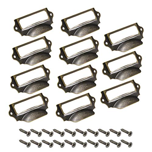 Sourcingmap, maniglie per etichette, stile vintage, in ferro, per cassetti, armadietti, armadietti, bronzo, 90 x 41 mm, confezione da 10 viti