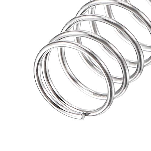 Sourcingmap, molla a compressione in acciaio inox 304, diametro 5 mm, dimensione filo 0,4 mm, lunghezza compressa 9 mm, lunghezza libera 35 mm, capacità di carico 2N, tonalità argento, 30 pezzi