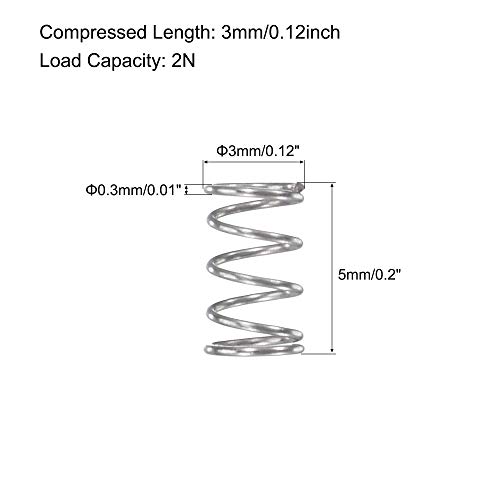 Sourcingmap, molla a compressione in acciaio inox 304, diametro di 3 mm, dimensione del filo 0.3 mm, lunghezza compressa 5 mm, lunghezza libera 3 mm, tonalità argento, 20 pezzi