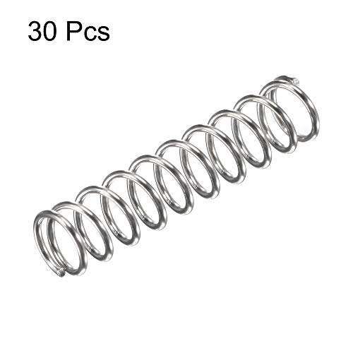 Sourcingmap, molla a compressione in acciaio inox 304, diametro 7 mm, dimensione filo 0.8 mm, lunghezza compressa 18 mm, lunghezza libera 30 mm, tonalità argento, 30 pezzi