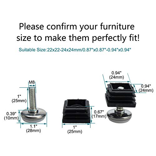 Sourcingmap, piedini di livellamento per mobili, adatti per steli quadrati, regolabili, ideali per gambe della scrivania o del tavolo, 4 pezzi