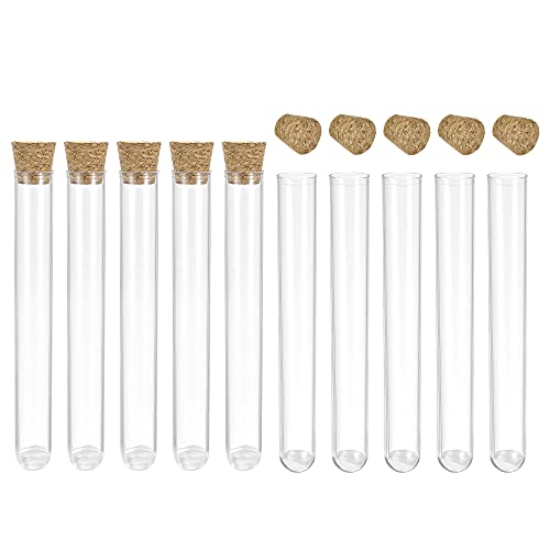 Sourcingmap, 10 provette in plastica PS con tappi in sughero, base rotonda, 16 x 125 mm, contenitore per esperimenti scientifici campioni espositori decorazioni