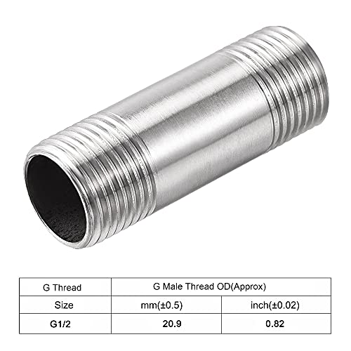 Sourcingmap, raccordo per tubi in acciaio inox, attacco G1/2 maschio a G1/2, filettatura maschio, lunghezza 50 mm, 2 pezzi