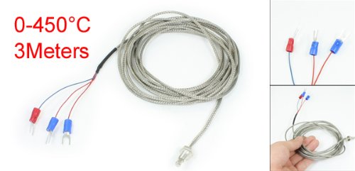 Sourcingmap Sonda Sensore Temperatura Termocoppia Pt100 Tipo K Cavo 3 Metri Impermeabile Resister Sonda Sensori Trasduttori Temperatura (0~450°C)