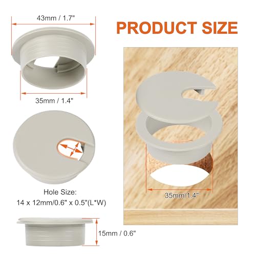 Sourcingmap Ufficio Scrivania Computer Cavo in plastica Foro PASSACAVI Tappo Grigio 35mm Diametro 4 pz