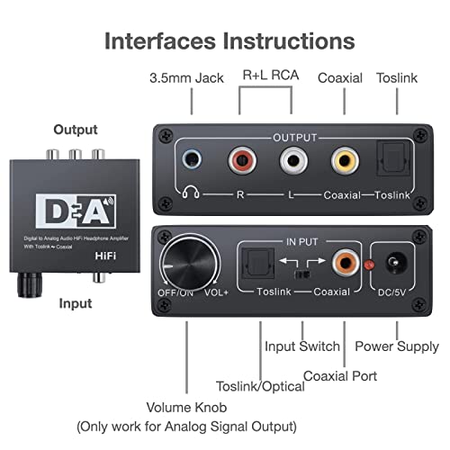 SOUTHSKY Convertitore DAC, Amplificatore HiFi per Cuffie, da Digitale a Analogico 2 RCA 3.5 Jack, Coassiale Ottico Bidirezionale, Controllo del Volume e Regolabile