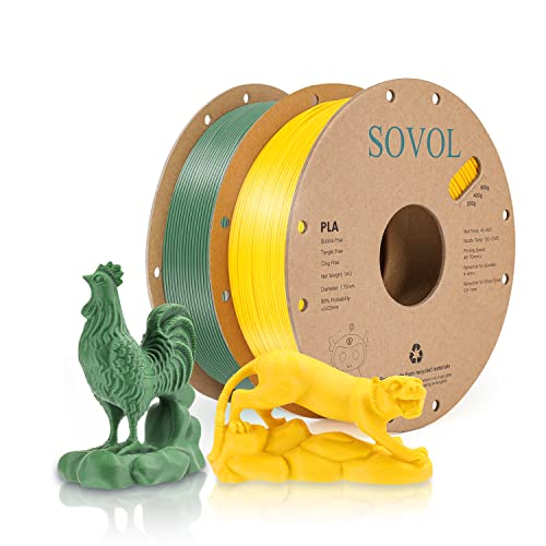 Sovol filamento PLA 1,75 mm, filamento per stampante 3D bobina da 2 kg (4,4 libbre), precisione dimensionale +/- 0,03 mm, filamento avvolto in modo ordinato, PLA Verde+Giallo