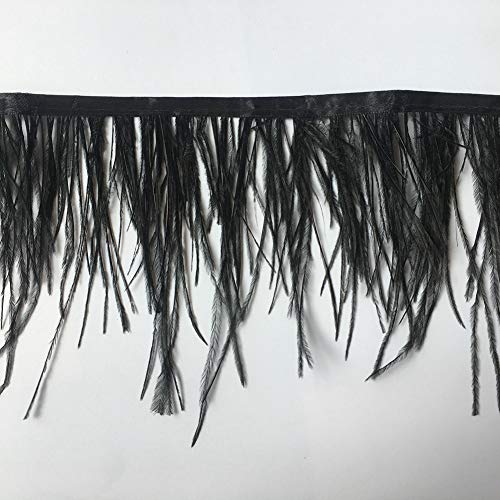 Sowder, orlo sfrangiato con piume di struzzo con nastro di raso per abito, per cucito, artigianato, costumi, decorazioni, confezione da 1,8 m Black