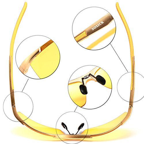 2.Forte & sporty: aslo questi occhiali per la guida notturna è comodamente Sport Occhiali da sole perché ha una cornice in alluminio magnesio che li rende resistente agli urti, estremamente durevole e flessibile.