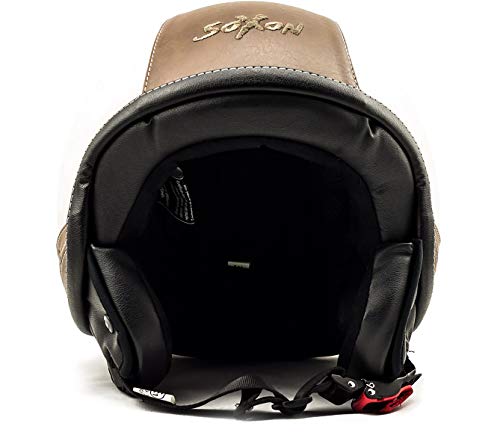 Soxon SP-301-URBAN Casco Demi-Jet Moto, ECE Certificato, Design in Pelle, Compresi Sacchetto Portacasco, Beige/Creme, L (59-60cm)