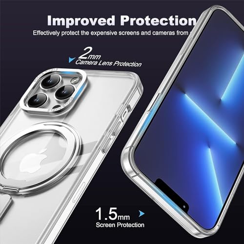 Soyeacrg Custodia per iPhone 15 PRO Max/15 Pro/15 Plus/15, Compatibile con MagSafe Anello Magnetico ruotabile a 360° Supporto Invisibile Custodia Opaca Antiurto di Livello Militare,Clear,15 Plus